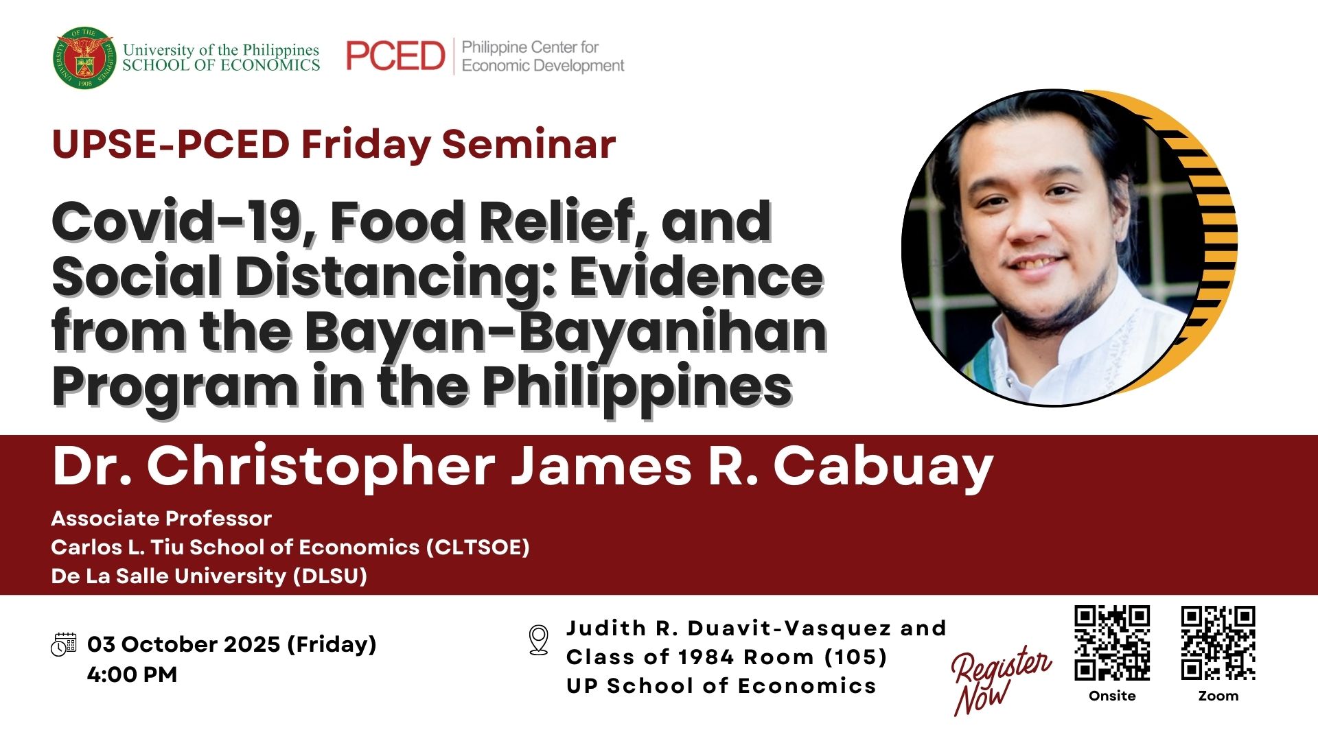 The Economics Research Center is pleased to announce its full lineup of speakers from September to December 2025. SEPTEMBER 5 - Isaiah Paolo Lee (UP NIMBB) 12 - Lisa Bersales (CPD) 19 - Joel Santillan (UPSE/AIM) 26 - Chris Cabuay (DLSU) OCTOBER 1 - Yasuyuki Sawada (UTokyo/former ADB chief… Read More.